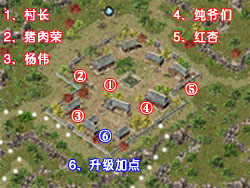 登陆游戏后,直接在村长(250 200)处接取第一个任务“初涉江湖”。任务要求你去分别完成杨伟(233 224)和猪肉荣(229 194)的任务。(两个任务最好同时接,省得重复杀怪)。